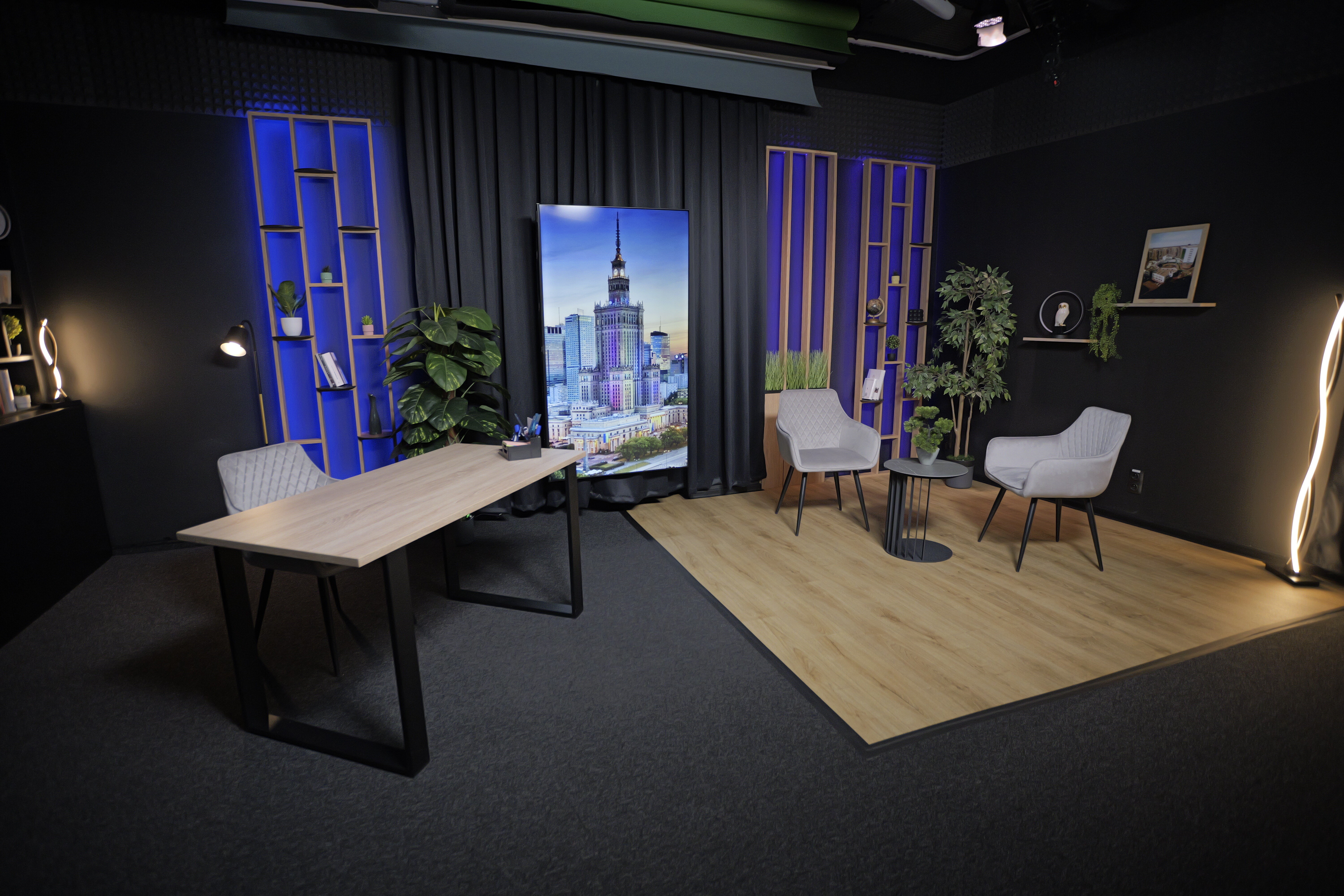 Nasze studio nagrań to profesjonalna, elastyczna przestrzeń stworzona do realizacji podcastów, kursów e‑learningowych, webinarów i materiałów filmowych.